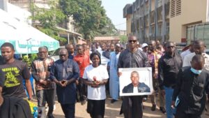 Dans son oraison funèbre, Mme Doua Guilavogui, représentant l’Association des Magistrats de Guinée (AMG), est revenue sur le parcours atypique et inspirant de David Simbiano. Né le 4 avril 1993 à Guéckédou, fils de feu Étienne Bono et de feu Anne-Marie Milimouno, il s’était distingué dès son jeune âge par sa rigueur et sa détermination. Bachelier en 2016, il poursuit ses études à l’Université de Sonfonia en Faculté de Droit, où il s’illustre par son sérieux et sa persévérance.