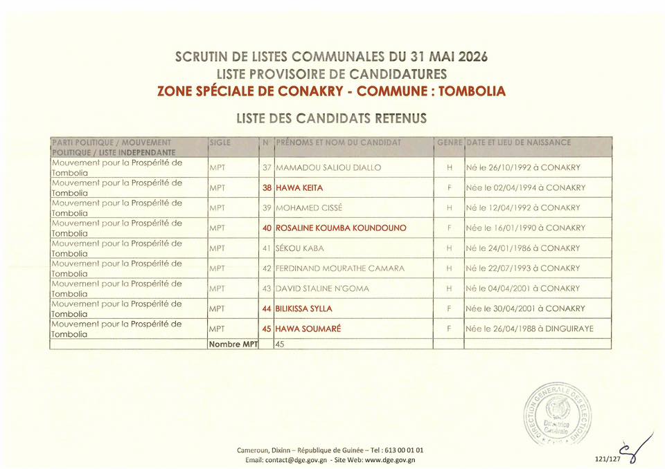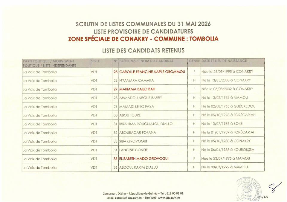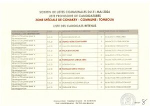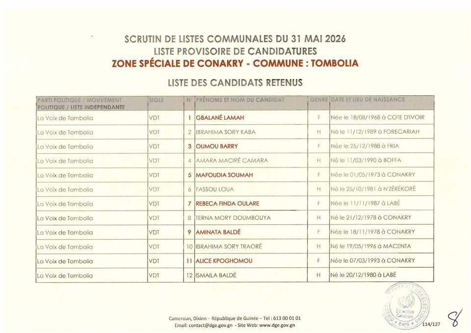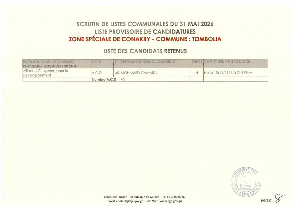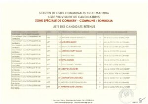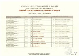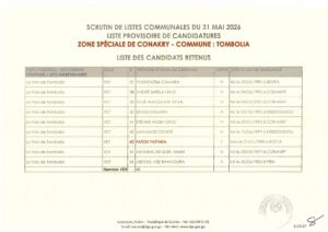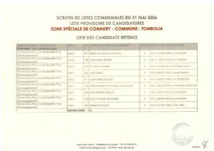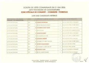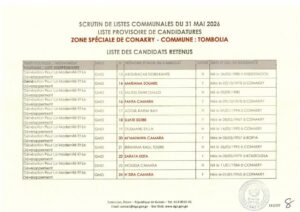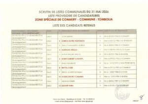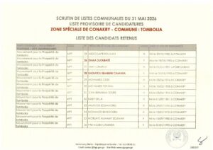 La Direction Générale des Élections (DGE) a franchi une étape majeure dans le processus électoral en rendant publique, le 22 avril 2026, la liste provisoire des candidatures pour les élections communales prévues le 31 mai prochain dans la région spéciale de Conakry.