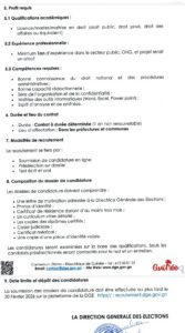Dans le cadre des préparatifs liés à l’organisation des élections législatives et communales, la Direction Générale des Élections (DGE) a annoncé le recrutement d’Assistants juridiques destinés à renforcer le dispositif juridique et administratif du processus électoral.