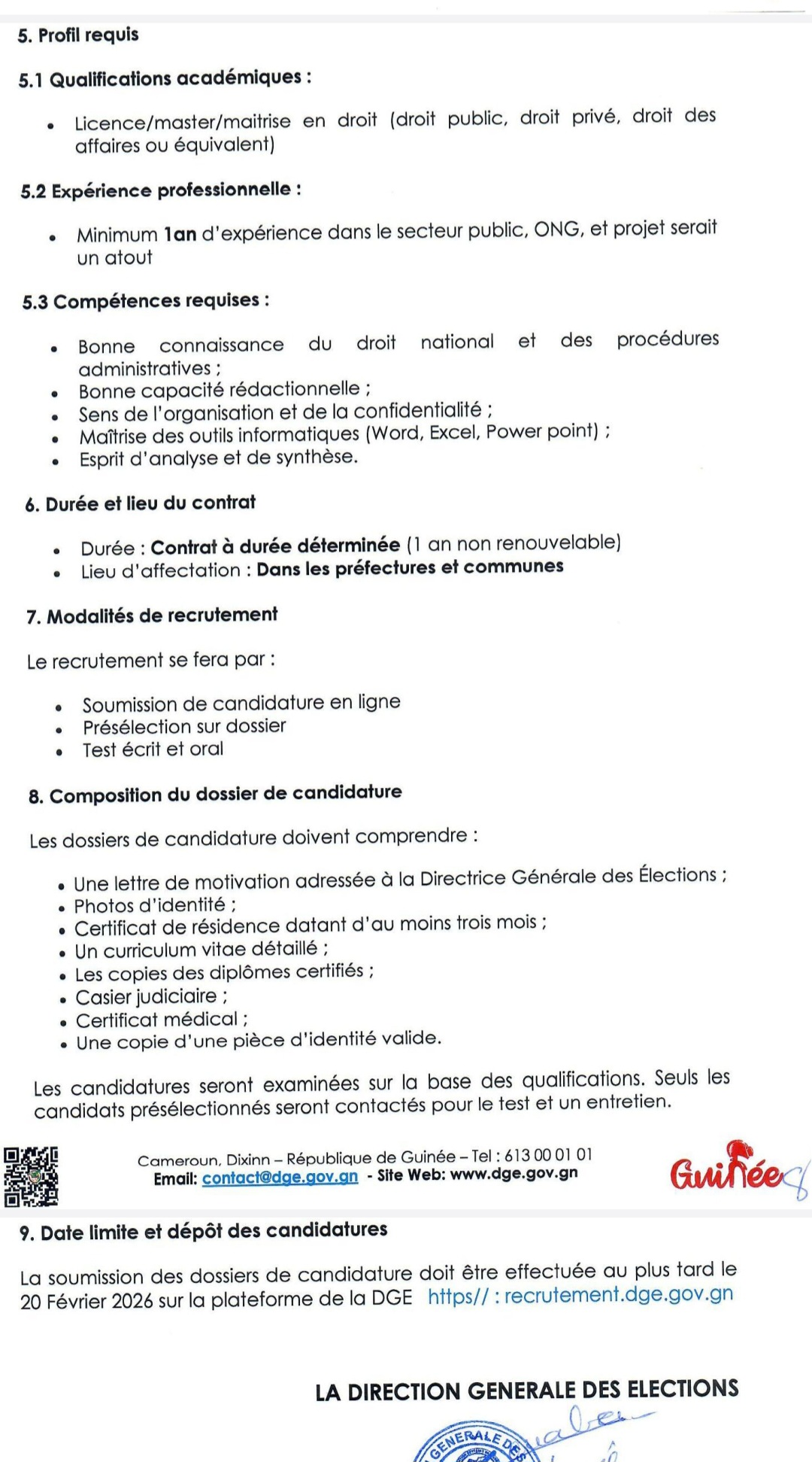 Par ce recrutement, la Direction Générale des Élections réaffirme sa volonté de garantir un processus électoral crédible, conforme à la loi et porté par des ressources humaines qualifiées au service de la démocratie.