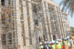Cette descente sur le terrain avait pour objectif principal de s’enquérir de l’état d’avancement des travaux de cette gigantesque infrastructure judiciaire, appelée à transformer durablement le fonctionnement des juridictions dans la capitale. Sur place, la délégation ministérielle a pu constater de visu l’évolution significative du chantier, notamment du premier bloc actuellement en phase avancée de construction.